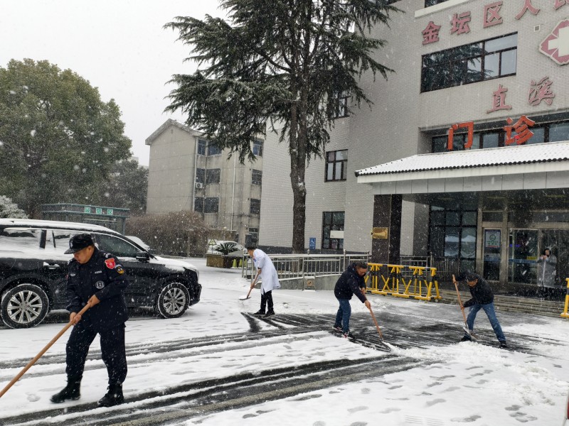 2026年的第一场雪,在清晨悄然覆盖了金坛大地。雪花纷飞中,直溪中心卫生院的党员干部们早已行动起来。他们抢在职工上班、群众就诊前,清扫出一条条“暖心路”,用行动诠释着“以病人为中心”的服务理念。