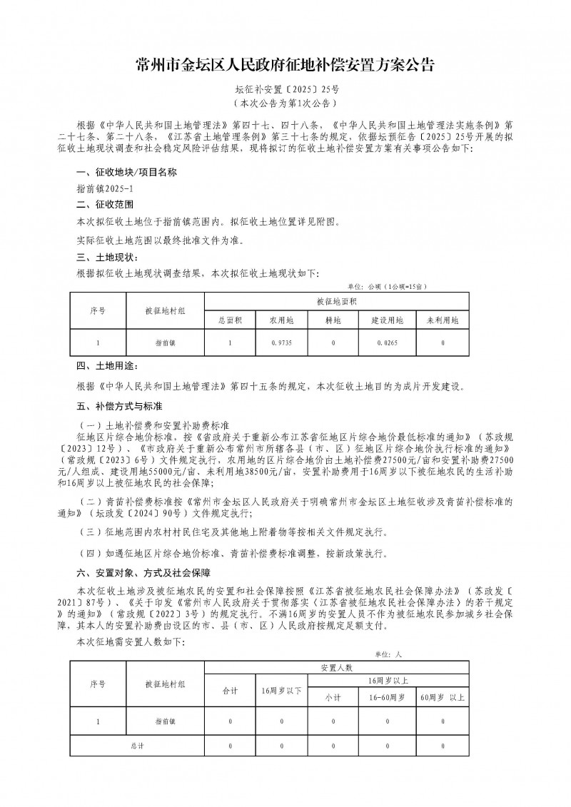 指前镇2025-1地块征地补偿安置方案公告