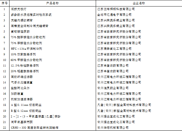 表25 2010年新增江苏省级高新技术产品一览表