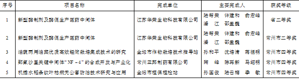 表26 2010年获江苏省、常州市科技进步奖获奖项目一览表