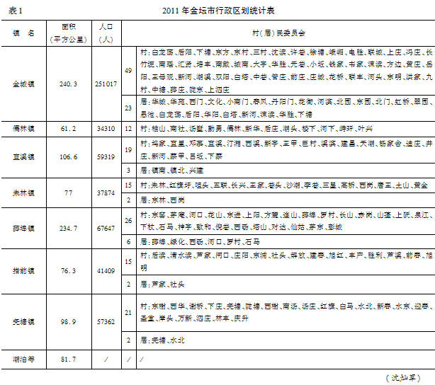 【行政区划】 金坛市行政区域现有面积976.7平方公里,人口54.9万人,辖7个镇1个开发区,157个村委会,38个社区居委会,镇区平均人口规模6.87万人,平均面积为122平方公里。