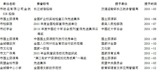 金坛市获得的综合荣誉