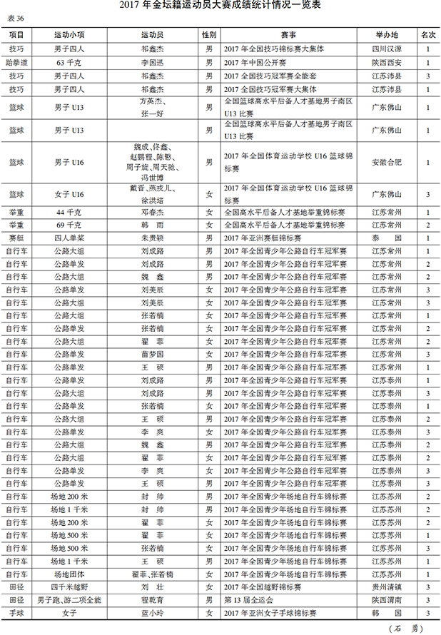 【徐夕涵破世界残奥游泳锦标赛纪录】 2017年墨西哥世界残奥游泳锦标赛上,金坛籍运动员徐夕涵代表中国队,以42.72秒的成绩获女子S5级50米蝶泳冠军,打破自己在2016年残奥会上的纪录,创造新的亚洲纪录。