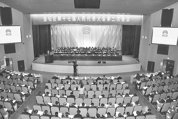 【金坛区第十七届人民代表大会第二次会议】 1月3—5日在金坛市民中心举行。会议听取和审议区长沈东所作的《区政府工作报告》,审议区发改委提交的《金坛区2017年国民经济和社会发展计划执行情况与2018年计划安排意见的报告》和财政局提交的《金坛区2017年财 政预算执行情况和2018年财政预算草案的报告》,审查和批准区2017年国民经济和社会发展计划执行情况与2018年计划,区2017年财政预算执行情况和2018年财政预算。听取和审议王跃中所作《区人大常委会工作报告》、宋文良所作《区人民法院工作报告》、王强所作《 区人民检察院工作报告》。会议就相关工作报告分别作出决议。