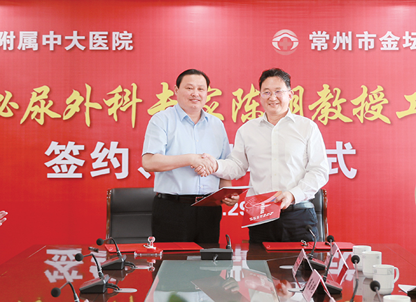 【中大医院“陈明教授工作室”落户金坛区人民医院】 5月29日,东南大学附属中大医院“陈明教授工作室”签约仪式在金坛区人民医院举行。东南大学附属中大医院副院长、东南大学泌尿外科研究所所长陈明教授,院长特别助理徐冰教授,金坛区副区长凤启龙、区卫健局副局长徐颖和区人民医院党委书记、院长苏建华等参加签约仪式。签约仪式上,苏建华表示,为加快医院学科建设,补齐金坛区人民医院专业短板,近年来多渠道与三甲医院加强医联体建设,通过外聘教授、签约专家、专科联盟等方式柔性引进技术和人才,带动了专科稳步发展,提升医疗服务能力,受到了金坛百姓的欢迎。陈明教授表示,一直以来,中大医院本着互助互惠的原则,扎实推进医联体建设,努力让优质资源下到基层,走出中大模式,获得广泛好评。