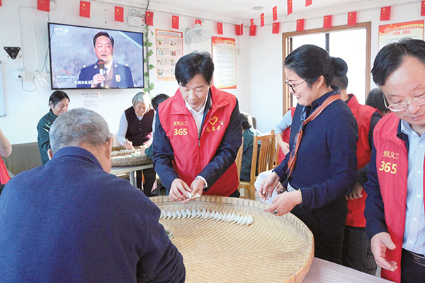 10月20日,金城镇党委班子成员在白龙荡敬老院做义工