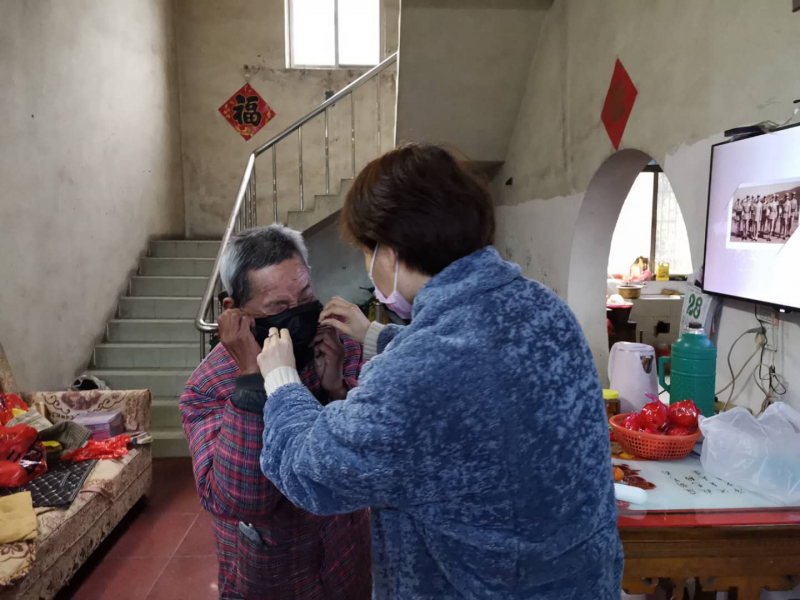 新冠肺炎疫情发生以来,辖区村民均被按照要求尽可能少出门,由于不便出门,汤庄村五保老人朱国平家中口罩出现短缺,了解到相关情况后,村委会立即组织工作人员上门,为朱国平送去了关爱。在老人家中,工作人员为他和妻子测量体温,并示范如何佩戴好口罩,在与朱国平交谈过程中详细了解了他和妻子的身体健康状况和饮食起居情况,并向他普及疫情防控知识,叮嘱他尽量留守家中,若要出门,佩戴好口罩,做好个人防护。为确保疫情防控全覆盖、无死角,汤庄村对辖区内的分散供养五保户、三无老人等共13户进行走访探望,了解他们的生活状况,为他们测量体温、宣传疫情防控健康知识等,告知他们要“不出门、不串门、不聚集、戴口罩”,积极配合村里开展疫情防控工作。
