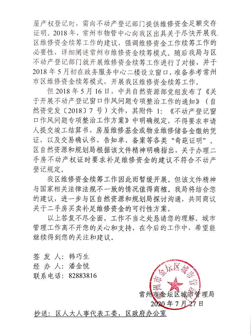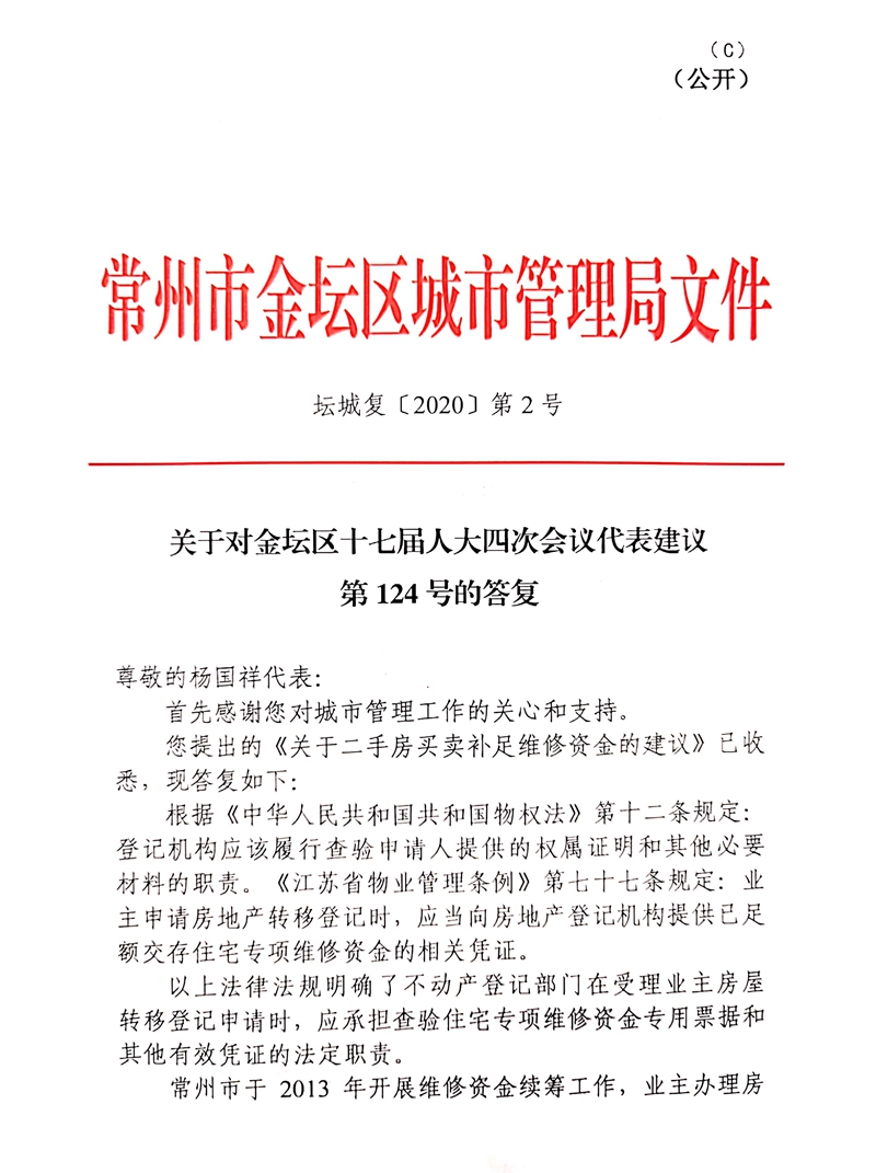 关于对金坛区十七届人大四次会议代表建议第124号的答复