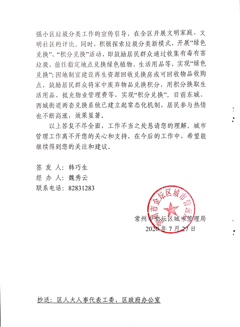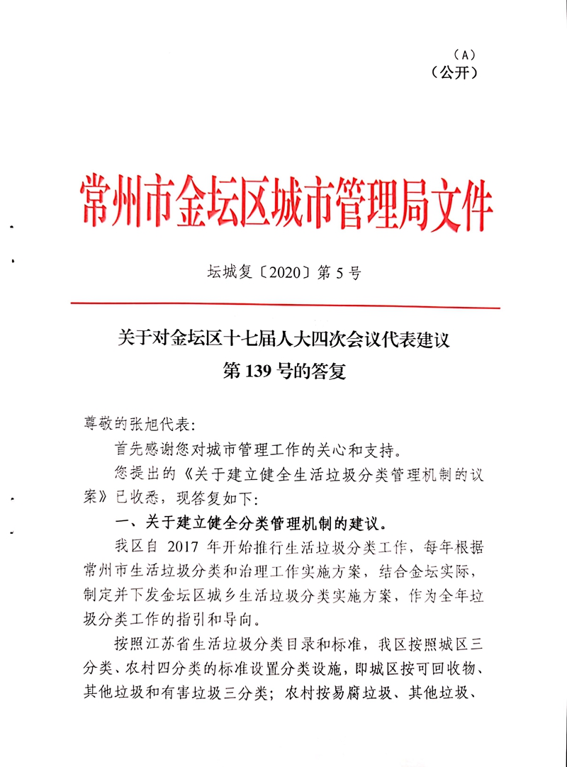 关于对金坛区十七届人大四次会议代表建议第139号的答复
