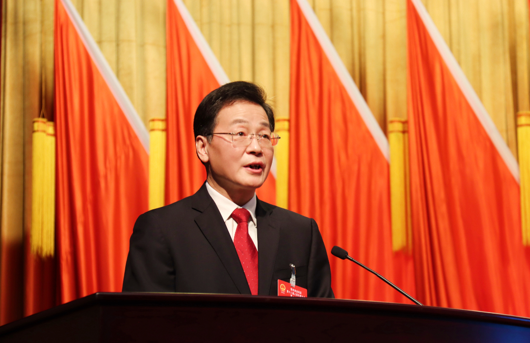 王跃中代表区十七届人大常委会向大会作《金坛区人大常委会工作报告》。