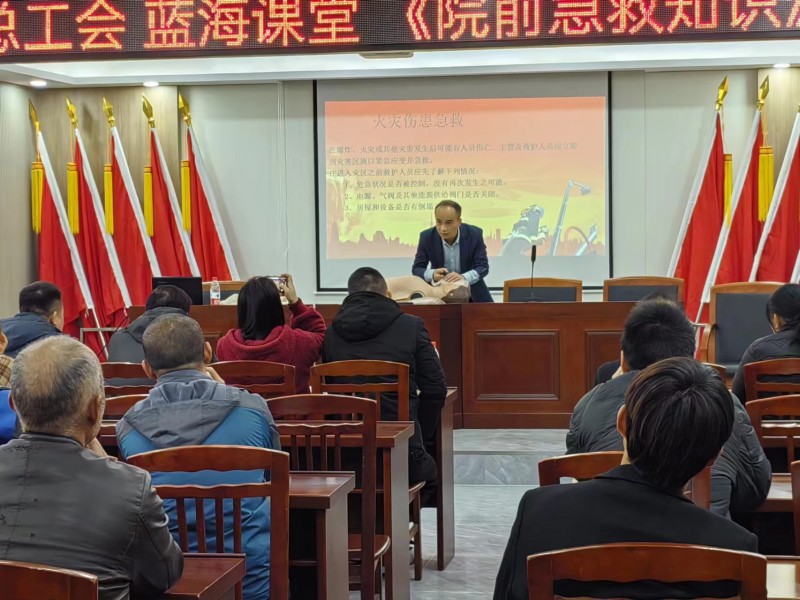 为扩大急救知识普及面,提高企业职工的安全意识和急救能力,11月20日,朱林镇总工会在江苏宏达电镀有限公司开展蓝海课堂进企业系列讲座,本次活动特别邀请江苏省安全生产培训教师、红十字救护员、教员部培训部主任徐德平为职工授课,共有约50名企业职工参会。