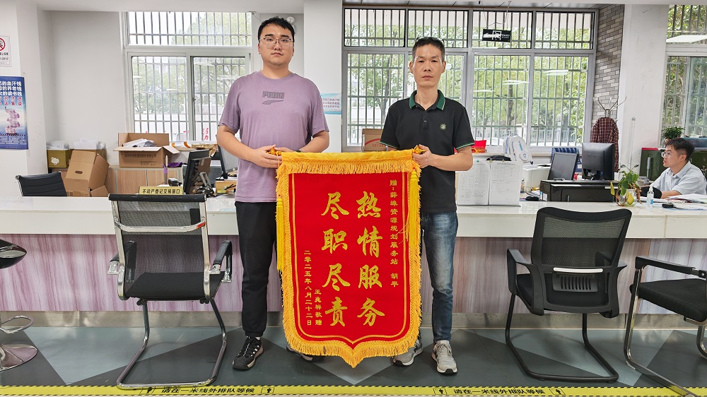 10月15日,区资源规划局茅山中心所薛埠服务站内暖意融融,市民王先生专程送来一面印有“热情服务 尽职尽责”的锦旗,向服务站工作人员胡平及团队表达谢意——正是他们的高效服务,让王先生顺利解决了户口落户的“急难事”。