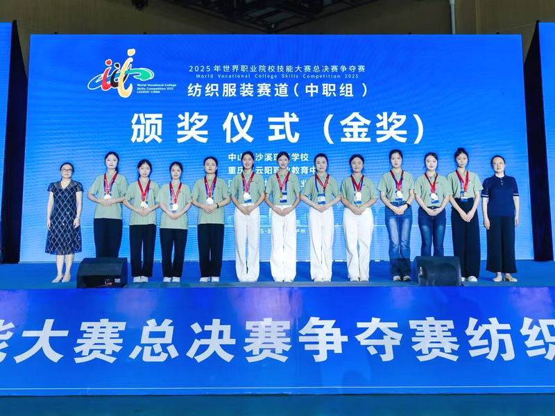 8月20日至24日,2025年世界职业院校技能大赛总决赛纺织服装赛道(中职组)在泸州市职业技术学校举行。本次比赛共有来自全国25个省区市的61支代表队、700余名选手参赛,省金坛中专学生陈瑞涵、刘芳婷、施青文凭借过硬实力脱颖而出,斩获金牌。