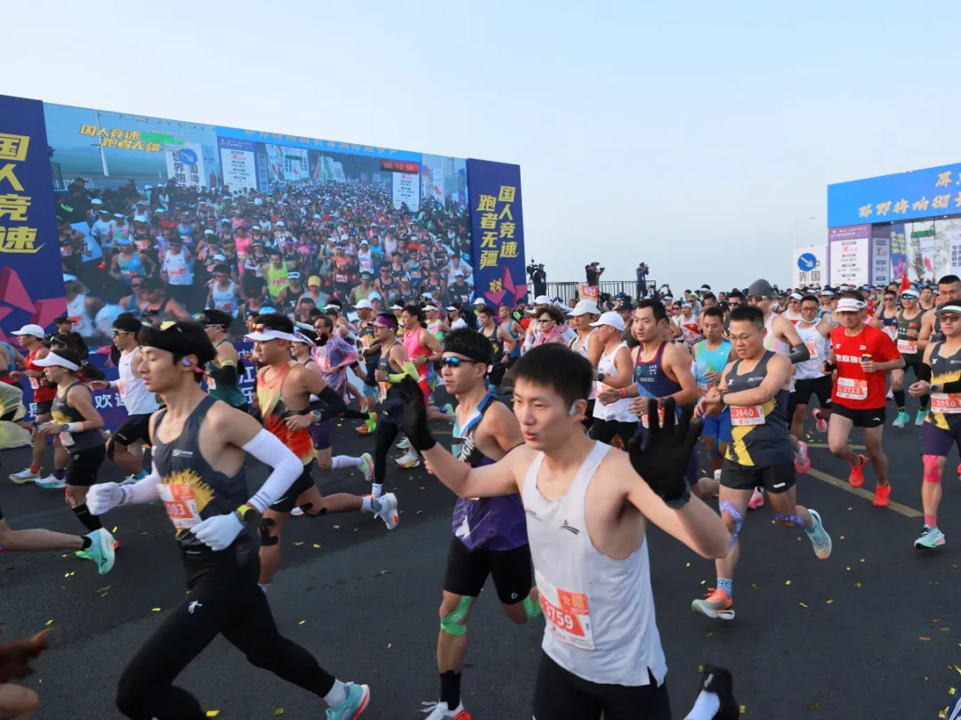 赛道上强手如林、逐风竞驰。这场以精英竞技与速度激情为特色的赛事吸引了众多国内顶尖选手同场竞技,展开激烈角逐。选手们不仅展现了卓越的速度与耐力,更以坚韧不拔的意志和积极向上的精神风貌为观众呈现了一场高水平的竞技盛宴。经过巅峰较量,各组别成绩相继出炉:选手多斯包勒·哈布利江恩以2小时12分40秒的成绩夺得马拉松项目男子组冠军;张水华以2小时30分38秒的成绩摘得马拉松项目女子组桂冠,同时赢得女子组破赛会纪录奖。半程马拉松项目中,阿合拉·加尼别克以1小时06分28秒夺得男子组冠军并赢得男子组破赛会纪录奖,倪志艳以1小时18分11 秒的成绩赢得女子组冠军。