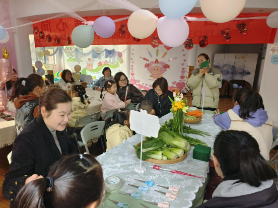 活动现场,在志愿者老师的耐心讲解和示范下,亲子家庭互相交流协作,将新鲜的蔬菜切片、摆盘,再搭配上色彩缤纷的鲜花,一束束充满创意与爱意的蔬菜鲜花便应运而生。整个过程中,亲子家庭欢声笑语不断,温馨的氛围弥漫在每一个角落。