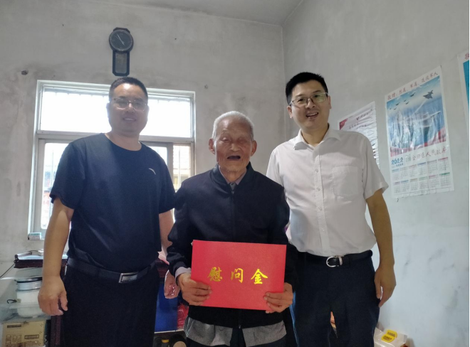 徐树平,金城镇后阳人,中共党员,服役期间曾荣立个人三等功一次、获嘉奖7次,近年来多次手术,日常化疗和医护费用很高。周飞对他为国防建设作出的贡献和付出表示感谢,并鼓励他坚定信心,积极治疗,党和政府始终不忘退伍老兵,会尽全力帮助他们渡过难关。