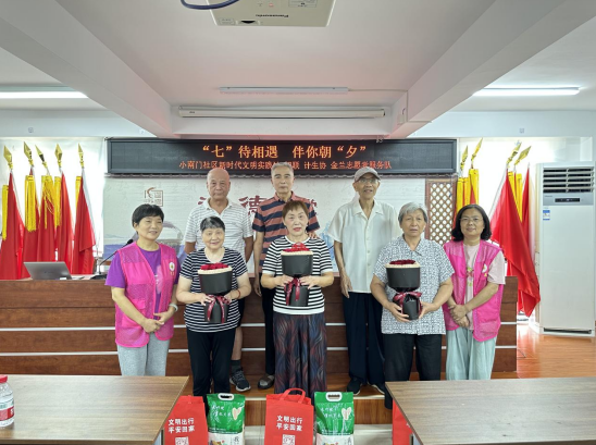 为传承中华优秀传统文化,弘扬忠贞爱情与家庭和睦幸福的美德,在七夕来临之际,金城镇小南门社区党总支联合金兰志愿者服务队共同举办了一场温馨浪漫的“七”待相遇 伴你朝“夕”主题社区活动。活动特别邀请了三对金婚夫妻参与,共同见证他们相濡以沫、携手半生的爱情故事。