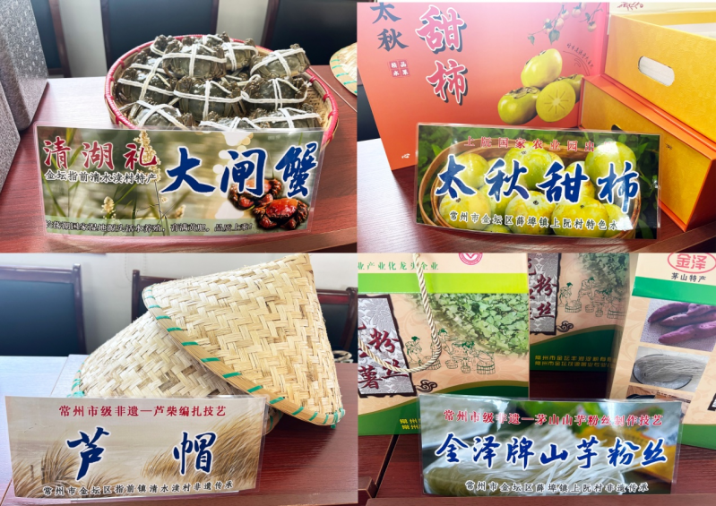 共建活动中,两地,两个村互相赠送了常州市级非遗—芦帽、山芋粉丝作为纪念,同时分享了各村的秋季特色农产品:太秋脆柿和长荡湖大闸蟹。未来,让水果“牵手”水产,串联薛埠镇“山之丰饶”与指前镇“水之灵动”,寻找振兴发展新路径,激活乡村振兴新动能。