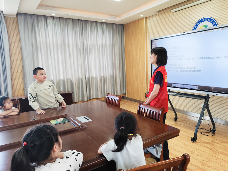 “霜降是秋季的第几个节气?”“霜降为什么要吃柿子?”随后的趣味问答环节,将现场气氛推向一个小高潮。问题刚一抛出,一只只小手便争先恐后地举起,孩子们眼神闪亮,应答声此起彼伏。志愿者老师及时给予鼓励与补充,在欢声笑语中,节气知识不再是书本上的铅字,而是可感可知的生活智慧。一问一答间,是知识的巩固,更是文化热情的悄然生长。