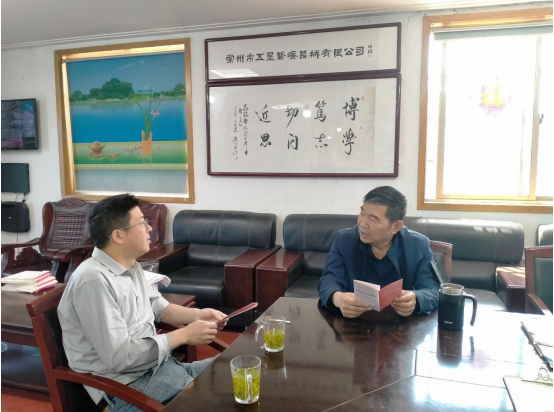 在常州五星医疗器械有限公司,董事长陈春顺向大家介绍了企业的发展现状和下一步打算。该公司是一家专注医用注射器生产销售的医疗卫生企业,有近60年的历史,现有员工150余人,各类技术骨干近20人,在2024年第三届江苏省退役军人创业创新大赛暨常州市第五届“戎耀龙城”退役军人创业创新大赛中以总分第二的好成绩获得二等奖;陈春顺爱厂如家,热心公益,大力支持驻坛部队建设,关心关爱生活困难退役军人,先后获评“首届金坛最美退役军人”“常州市最美退役军人企业家”“常州市道德模范”。调研组与企业负责人就如何盘活存量资产、加大新产品研发投入以及如何获得退役军人创业信贷和税收扶持等作了交流,助力企业更快更好发展。