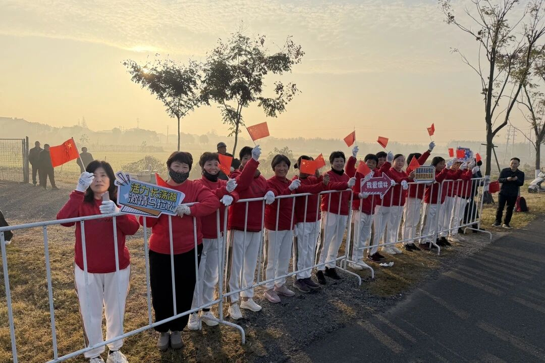 11月23日上午7:30,清脆的鸣枪声划破黎明,2025中国马拉松精英排名赛暨长荡湖马拉松竞赛正式启动。来自各地的马拉松选手,以金山南路与河海大道路口为起点,途经儒林镇五叶村、湖头村、后庄村,在美丽的长荡湖畔奋力奔跑。身处赛事核心区域,热情好客的儒林人,早早守在赛道边,用此起彼伏的呐喊声为选手们加油助威,保驾护航。
