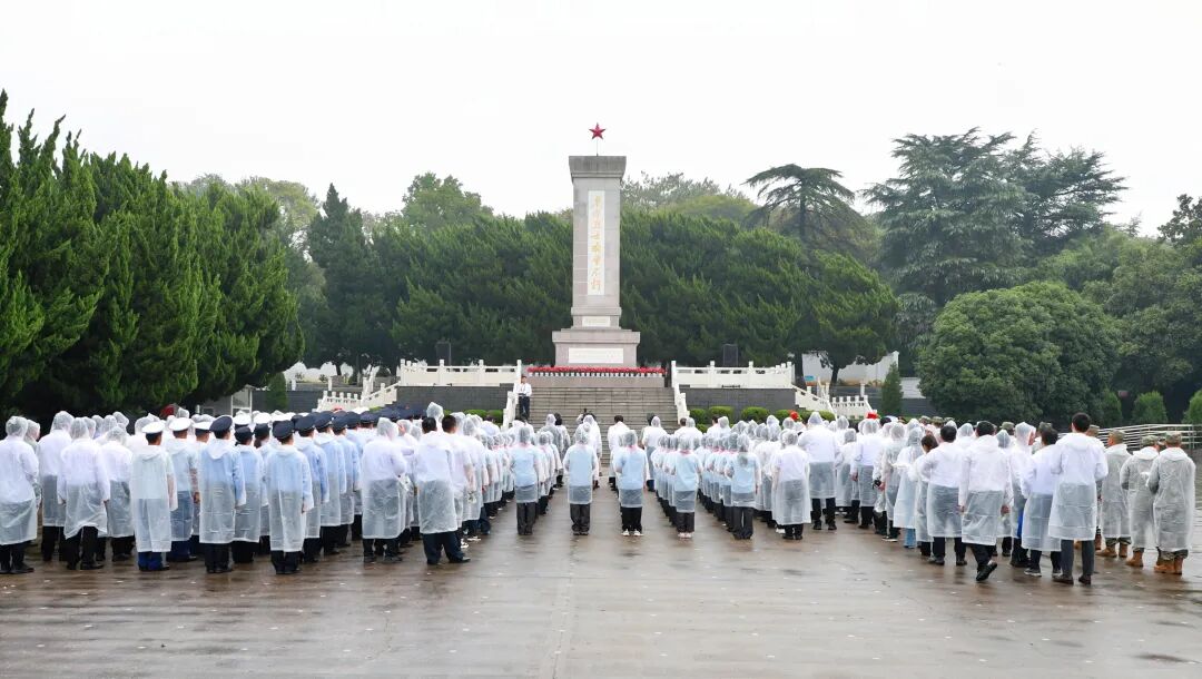 9时许,庄严的《义勇军进行曲》奏响,全体人员肃立,齐声高唱中华人民共和国国歌,激昂的旋律在陵园上空回荡。