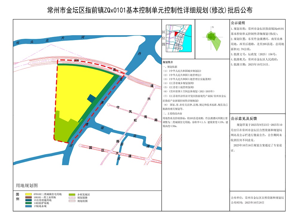 金坛区指前镇ZQx基本控制单元控制性详细规划(修改)批后公布