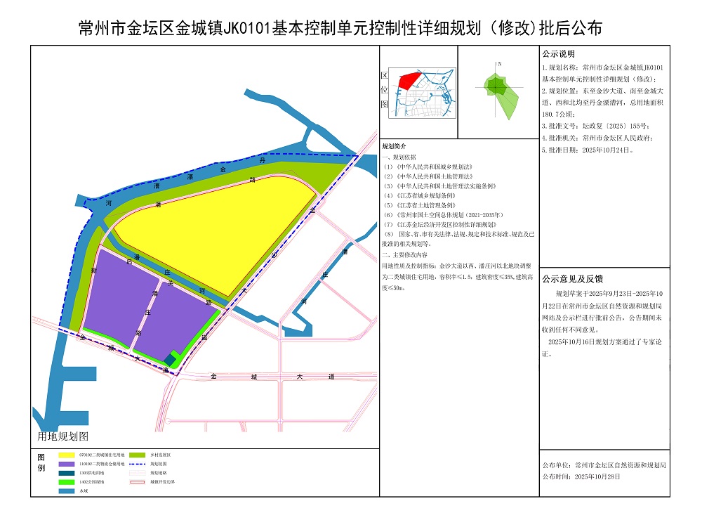 金坛区金城镇JK0101基本控制单元控制性详细规划(修改)批后公布