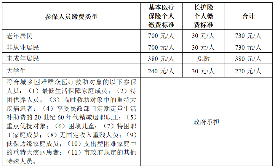 一、城乡居民基本医疗保险(以下简称“居民医保”)参保对象及缴费标准