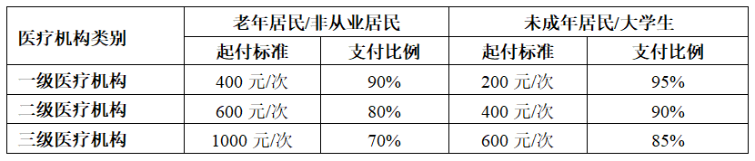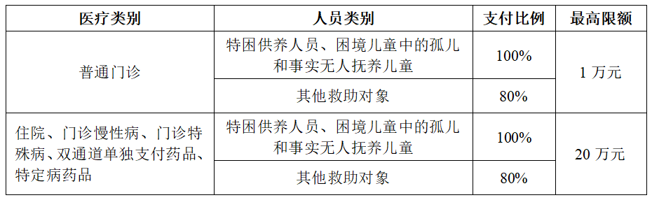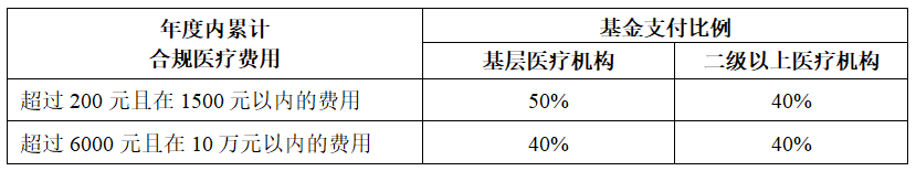 城乡困难群众发生的住院和门诊大病合规医疗费用按下表享受大病保险待遇。