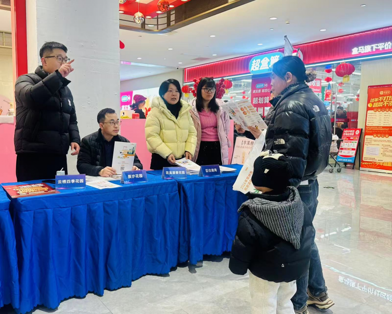 新天地盒马超市门口人头攒动。区住建局会同各大楼盘,向过往市民发放宣传资料,耐心讲解2026年购房资助新政具体内容,通过政策解读、优质房源推介等方式,将专业政策转化为通俗易懂的安居攻略。这场热气腾腾的新春集市,不仅是政策宣贯、房源推介,更是政企民之间安家宜居的双向奔赴。通过架起面对面沟通的连心桥,点燃了这座城市的安居梦。