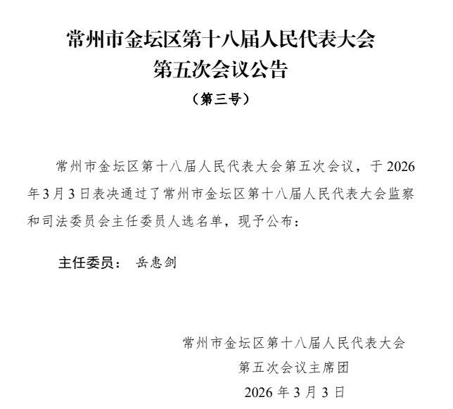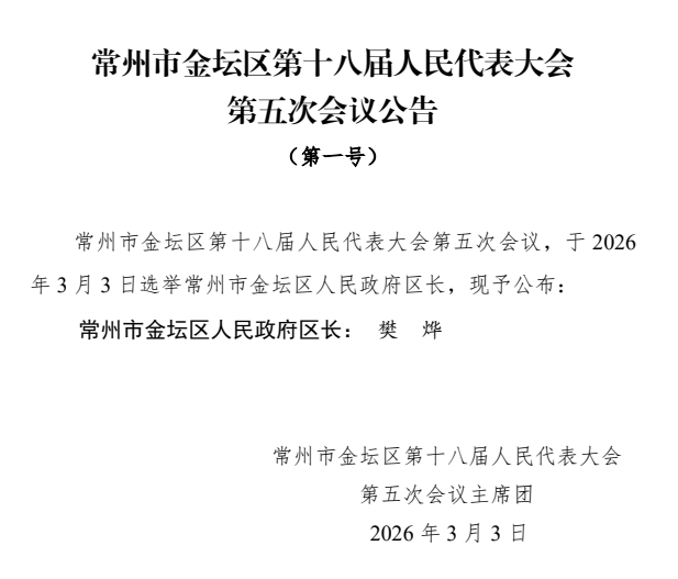 常州市金坛区第十八届人民代表大会第五次会议公告(一至三号)