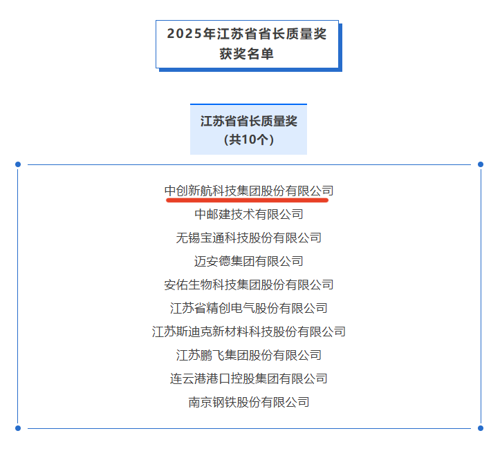 其中,中创新航科技集团股份有限公司荣获2025年“江苏省省长质量奖”,该奖项是江苏省人民政府设立的最高质量荣誉,授予实施卓越绩效管理、取得显著经济效益和社会效益的企事业单位。中创新航持续深化全面质量管理,构建了覆盖产品全生命周期的质量管控体系,成为新能源汽车动力电池领域的质量标杆。