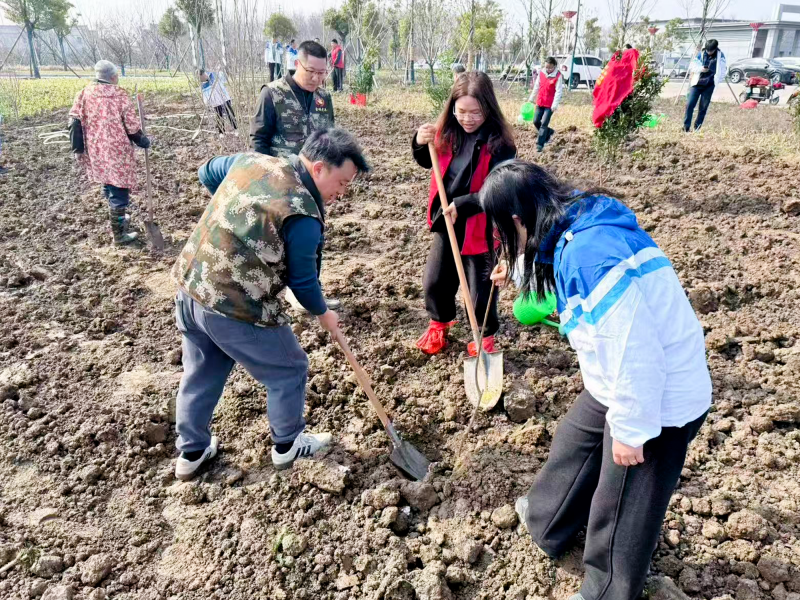 活动现场,大家热情高涨、干劲十足。志愿者与企业员工们有的挥锹铲土,有的扶苗填坑,有的提水浇灌,每一道工序都一丝不苟。大家默契配合,将一棵棵树苗稳稳植入泥土中。阳光下,新栽的树苗迎风挺立,与周边的油菜花田相映成趣,勾勒出春日里最动人的劳动画卷。
