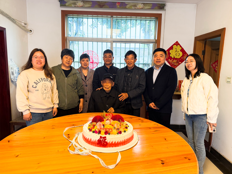 虽已百岁高龄,汤玉虎老人依然精神矍铄,满面笑容地迎接前来探望的众人。老人家中洋溢着浓郁的喜庆氛围,工作人员为老人点燃生日蛋糕上的蜡烛,送上慰问金,与老人促膝长谈,详细询问老人的饮食起居、身体状况及日常照料情况,仔细倾听老人的生活需求,叮嘱家属悉心照料老人起居,时刻关注老人健康,让老人安享幸福晚年。现场欢声笑语,温馨的氛围尽显亲情与乡情。