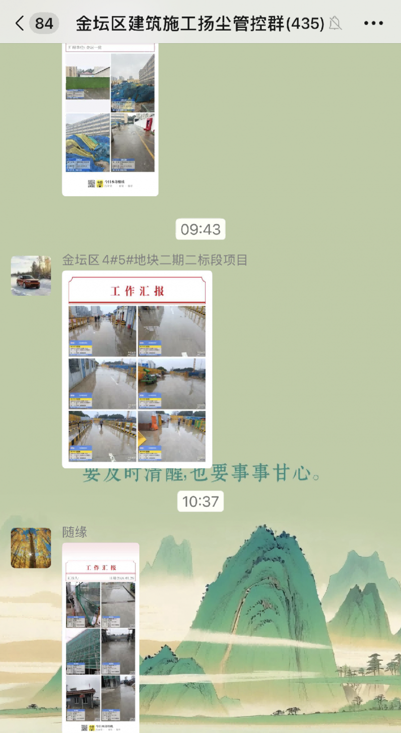 扬尘是PM2.5和PM10的重要来源。金坛生态环境局与住建、交通、城管等部门紧密协作,持续强化工地、码头、堆场和露天仓库等场所的扬尘管控,重点检查工地周边围挡、物料堆放覆盖、土方开挖湿法作业、路面硬化、出入车辆清洗、渣土车辆密闭运输“六个百分之百”措施落实情况,对未按要求落实防尘措施的督促停工整改。严格执行扬尘管控“一日四报”联合监督机制,各项目工地扬尘污染防治责任人每日7:00、9:30、14:00、16:30通过微信群上传道路冲洗、雾炮喷淋等实时管控情况。城管部门协同对城市主次干路、主要支路等增加作业频次,提高道路机扫率和冲洗比例。同时合理规划雾炮车作业线路,加强对施工区域和重点路段的抑尘作业。从加密巡查到智慧监测再到协同作业,一套“人防+技防”的标准化管控体系在联合督导下全面落地见效。