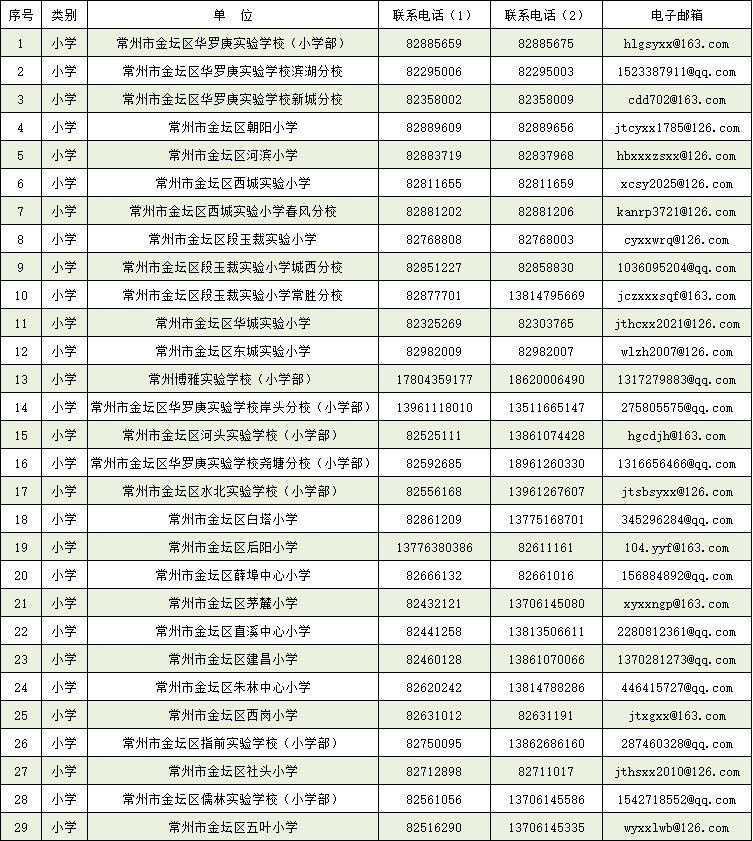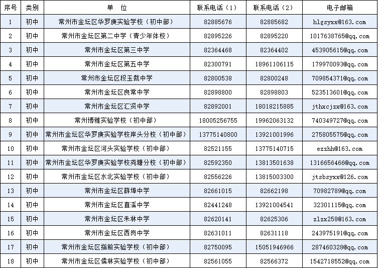 金坛区中小学规范办学行为接受家长建议、咨询联系电话和邮箱