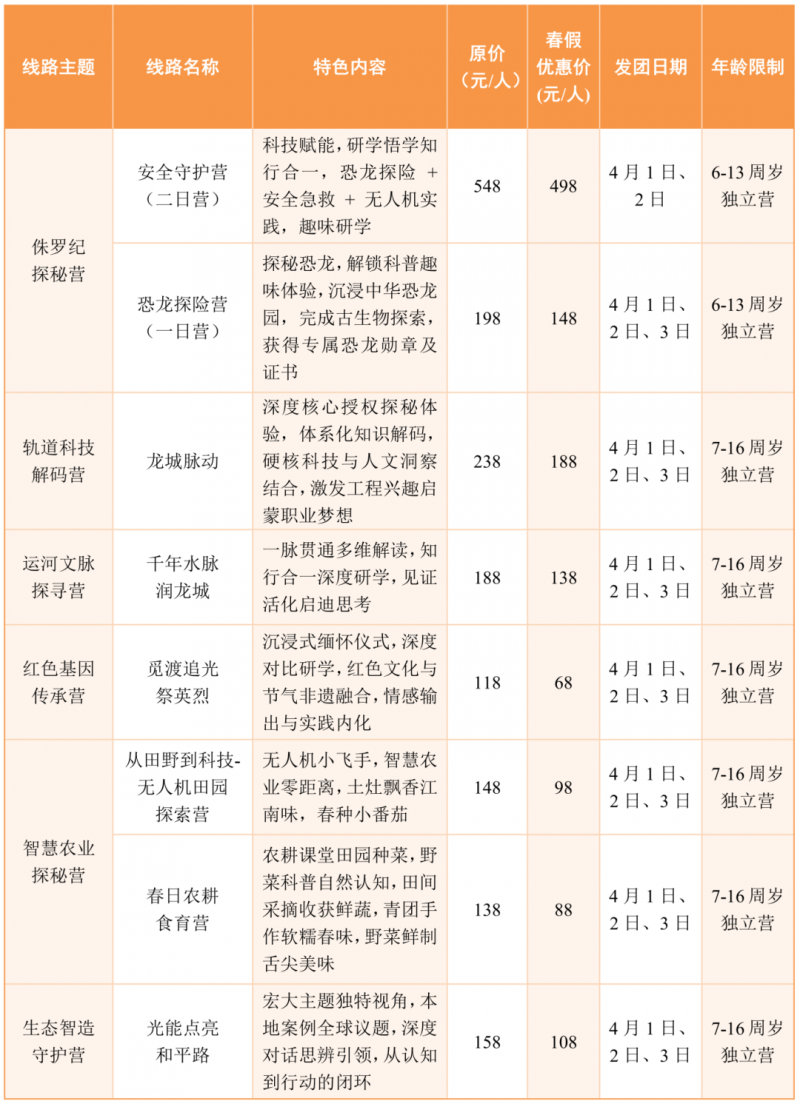 1. 侏罗纪探秘营:沉浸式探秘中华恐龙园,完成古生物探索,获得专属恐龙勋章及证书。