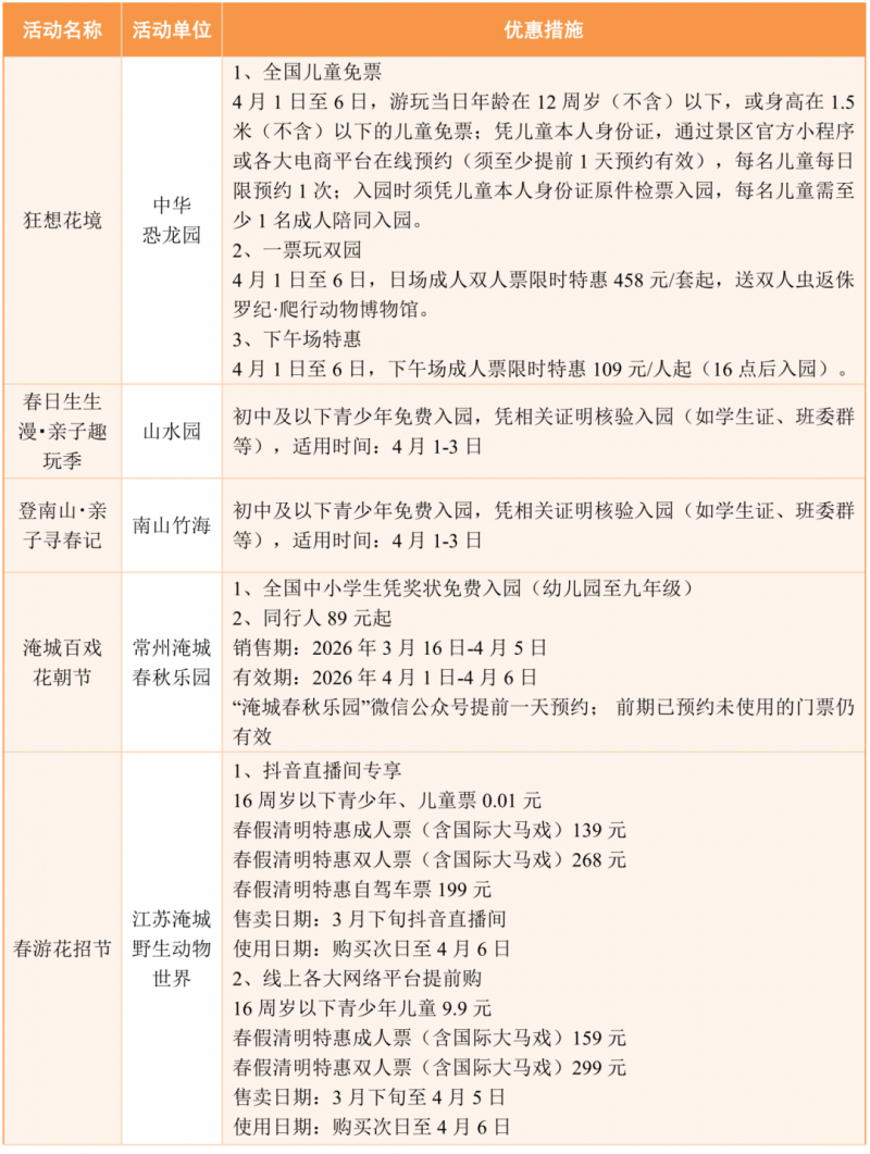 2. “公益普惠”优惠游:全市各大主力景区推出学生优惠政策,部分实施儿童、中小学生免费入园,部分主力景区同步推出成人促销票和亲子套票。