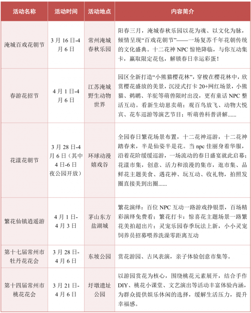 常州各大景区以“花”为题,推出系列春日活动,融合传统花朝文化与沉浸式游园体验。活动涵盖NPC互动、国风演绎、烟花秀、萌宠互动及市集美食等多元内容,为游客提供丰富春日选择。