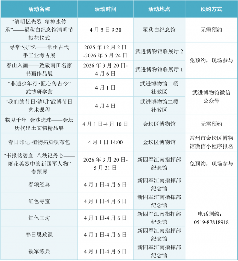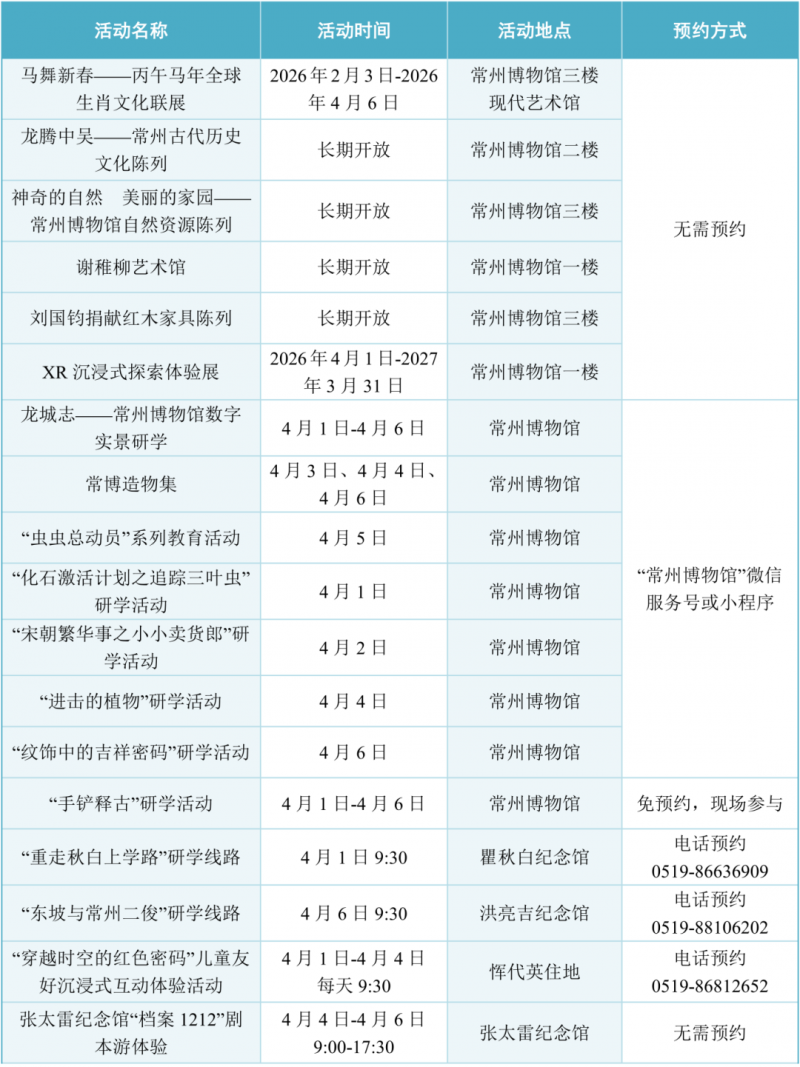 全市文博场馆推出“虫虫总动员”“进击的植物”等社教活动,开放“龙城志——常州博物馆数字实景研学”,开展人文走读、清明读书会及“穿越时空的红色密码”儿童友好沉浸式互动体验,打造“自然科普+红色人文”双驱动的春日研学矩阵。